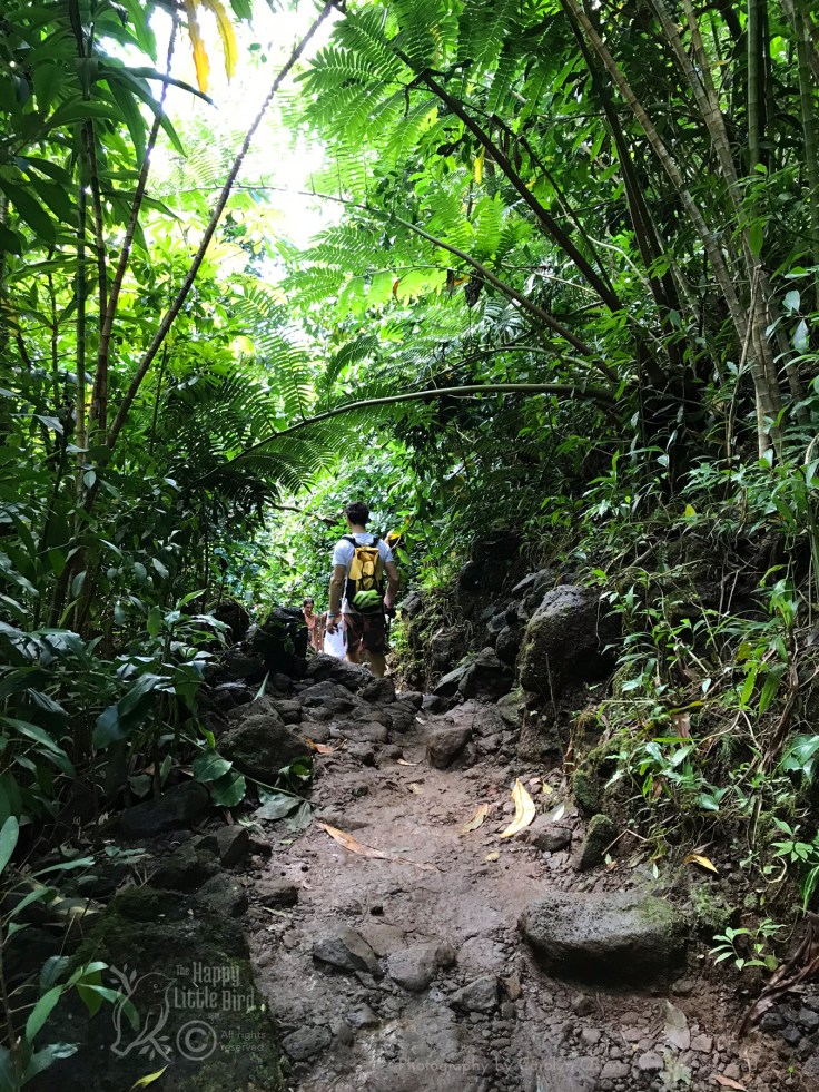 The trail is often muddy due to the rain and moisture that prevails in the Manoa Valley. The upside is that the moisture is what makes this area so beautiful and lush. The hike is fairly easy to do and is also kid-friendly but does require stepping up and down stairs and rocks along the way. There is a section that meanders through a bamboo forest and parts of the trail are accessible to the stream. The trail can also get quite crowded at times so be prepared to stop and go along the way on the busier days.